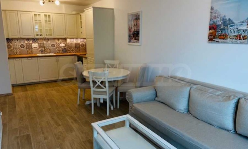 Апартаментът е след основен ремонт, напълно обзаведен и оборудван с нови мебели и ел. уреди - хладилник, фризер, съдомиялна, фурна, пералня и телевизор. Отоплението и охлаждането са решени с климатици. Не се допускат домашни любимци.
