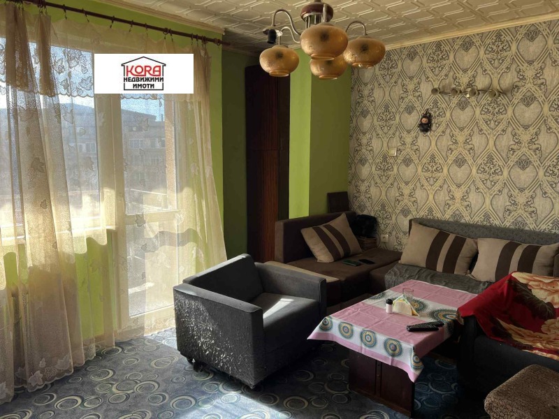 Предлагаме за продажба тристаен непреходен апартамент, находящ се на шести последен етаж, в сграда с асансьор, находяща се тихо и комуникативно място, в близост до читалище Извор, спирки на градски транспор, магазини и др. Състои се от коридор, кухня, хол, две спални, баня, тоалетна и две тераси, едната от който е с панорамна гледка.
