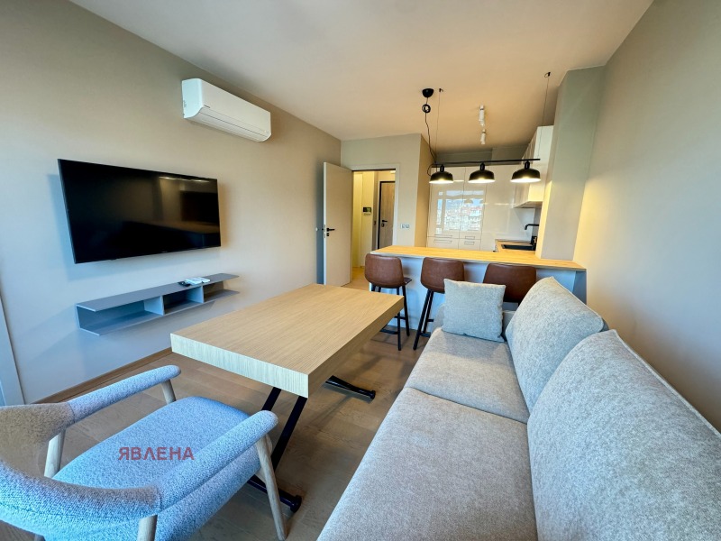 Агенция 'Явлена' предлага под наем нов луксозен и топъл двустаен апартамент, ситуиран на втори жилищен етаж в седеметажна сграда от 2025г. в жк. Манастирски ливади-запад на ул. Лъвски рид.