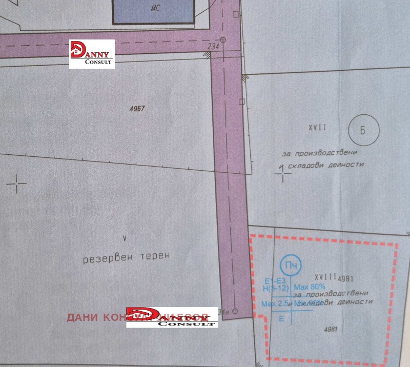 Агенция за недвижими имоти ДАНИ КОНСУЛТ предлага за продажба урегулиран поземлен имот за промишлено строителство в гр. Велико Търново, Западна промишлена зона. Имотът е с площ 3473 кв. м. , с правилна конфигурация и със сменено предназначение /За производствени и складови дейности/. Имотът е с уредени регулационни отношения и план за застрояване, плътност на застрояване до 80%, ниско застрояване, с комуникационно-транспортно обслужване и изградени пътища. Подходящ е за построяване на производствено предприятие, складове, автосервиз, логистистична база и др.