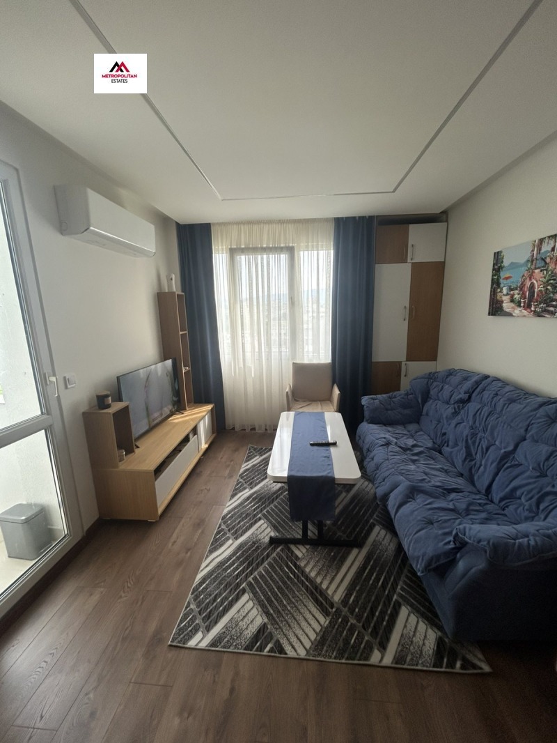 ЮЖЕН, ВЪТРЕШЕН И МНОГО ТОПЪЛ апартамент на 10 мин. от метростанция Люлин. Апартаментът е с площ от 55 кв. м. и се намира на ет. 10 от общо 14 в ЕПК с поддържани общи части. Разпределението е дневна с кухненски бокс, самостоятелна спалня, баня с тоалетна и душ кабина, коридор, балкон. Обзавеждането е: диван, печка, пералня, хладилник, климатик, абсорбатор, холна маса, спалня и гардероби, като всичко е показано на снимките. Изложението е изцяло юг. Отоплението е решено на климатик, като топлата вода е от ТЕЦ. В обявената цена са включени Интернет и Тв. Свободно паркиране около блока. Има възможност за домашни любимци при депозит в размер на два месечни наема. За повече подробности и огледи: 0896 902 228.