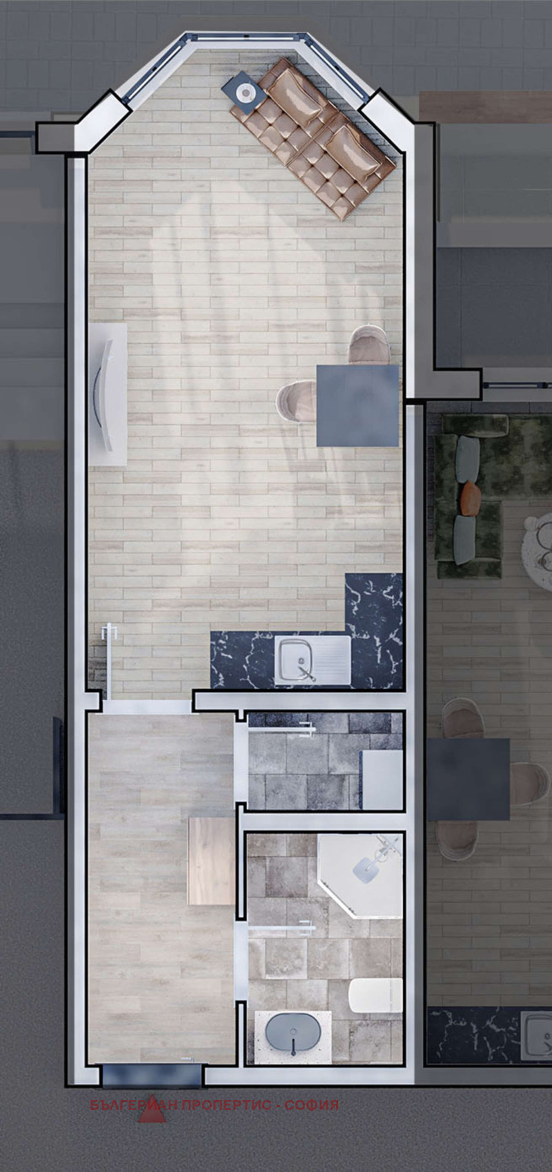 Апартамент 61 , обща площ 47. 29 кв. м. (нетна площ 37. 48 кв. м. + общи части 9. 81 кв. м. ).
