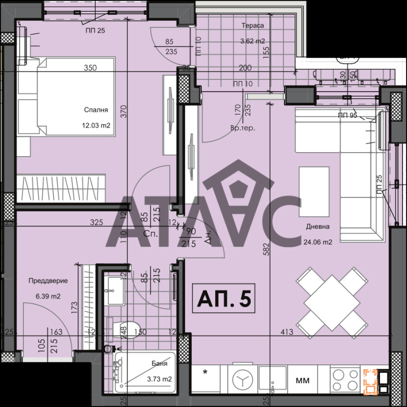 Просторна всекидневна с кухненски кът
