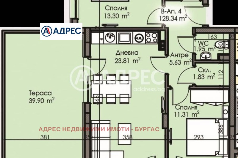 Адрес Недвижими имоти Ви предлага за продажба БЕЗ КОМИСИОННА ОТ КУПУВАЧА тристаен апартамент състоящ се от всекидневна, две спални, две бани, склад, антре и голяма тераса.