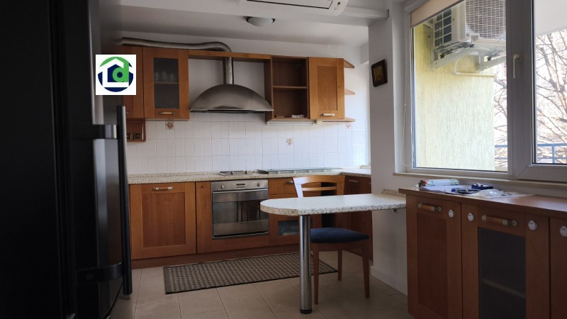 Жилището е с чиста жилищна площ 98м2 и е образуван от обединяването на два апартамента. Апартаментът е разположен на трети етаж от седем етажна жилищна сграда с асансьор. Имотът се състои от: входно антре, голям дневен тракт, две просторни спални, две бани с тоалетни, перално помещение, две тераси (едната от които остъклена). Изложение: югоизток/северозапад. Статут: апартамент. Към имота има две мази с площи съответно 4, 58м2 и 4, 06м2 извън посочената площ на апартамента. Жилището се продава напълно обзаведено и оборудвано с всички необходими мебели и ел. уреди. Състоянието е отлично и може да се ползва веднага. Подовите настилки в спалните- изциклен и лакиран дъбов паркет, в антрето и вестибюла испански гранитогрес. Дограма-ПВЦ. Отоплението е с електричество (нов климатик Дайкин ). Отлично състояние на общите части.