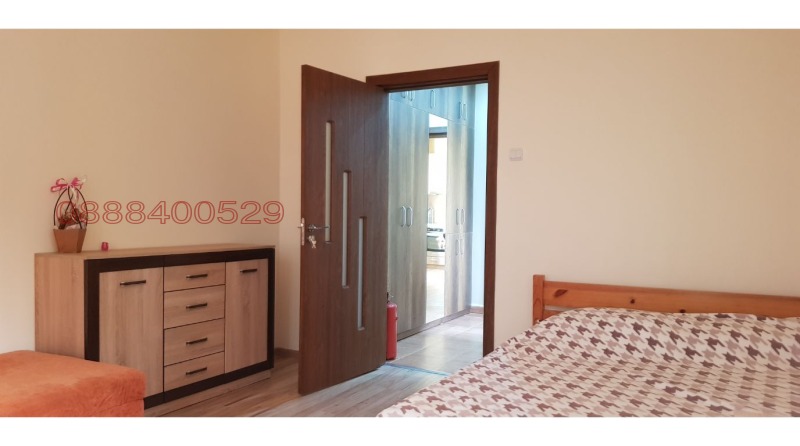 Самостоятелно жилище от първия етаж на къща в центъра, състоящо се от спално помещение с работно бюро и диван, кухня с кът за хранене, малка баня с тоалетна и вграден гардероб в коридора. Наличен е градински кът за ползване. Интернет е включен в цената. Автоматично подово отопление + климатици. Обзавеждане, електроуреди, посуда и завивки са налични. На пешеходно разстояние от центъра и от Медицинския университет.