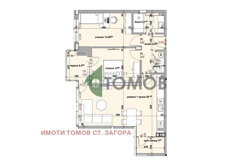 Имоти Томов Стара Загора представя на Вашето внимание чудесен тристаен апартамент с площ от 95. 77 кв. м. в кв. Самара 3 - БЕЗ КОМИСИОННА ОТ КУПУВАЧА! Жилището е със западно изложение и се намира на осми етаж в новострояща се модерна девететажна жилищна сграда с АКТ 14 и има следното разпределение: