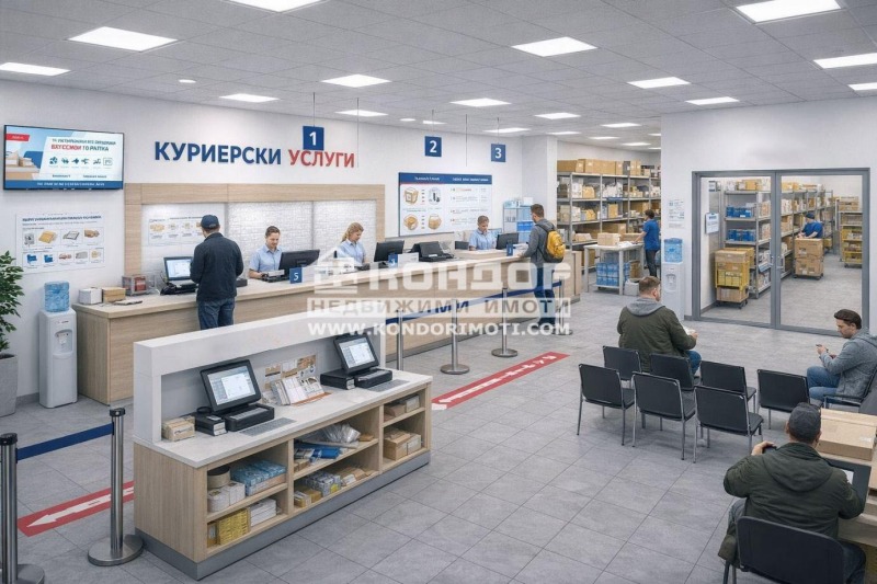 Имотът е с функционално разпределение, което позволява бързо и удобно обслужване на клиенти, приемане и предаване на пратки. Подходящ е както за офис на куриерска фирма, така и за комбинирана дейност с търговска част.