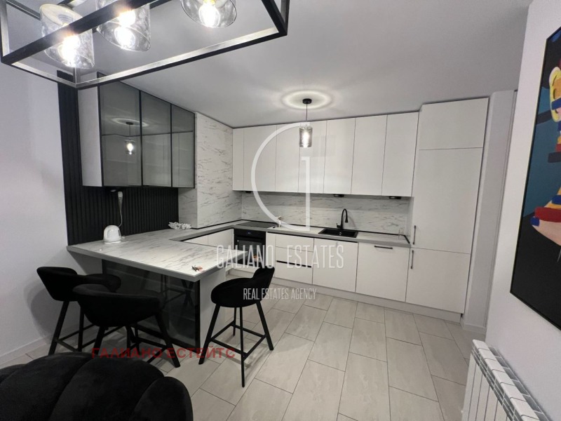 Galiano Estates Ви представя нов, просторен тристаен апартамент с изискан дизайн и светли помещения в затворен комплекс в кв. Манастирски ливади. Разпределение: просторна дневна с трапезария и кухненски бокс, 2 спални и 2 бани с тоалетни. Отопление: газ. Обзаведен с висок клас мебели и модерни уреди, предлагащи комфорт и стил. Сграда изпълнена в модерна визия и качествени материали.
