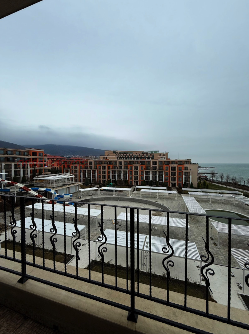 Продава се апартамент с гледка към морето в модерен комплекс на първа линия до морето, само на 2 минути пеша от плажа.