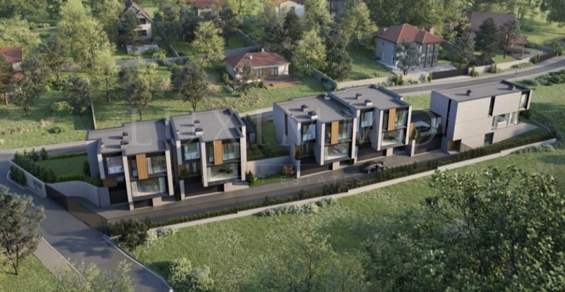 Представяме впечатляваща модерна къща, част от бутиков комплекс от пет еднофамилни къщи, разположен в края на спокойно и предпочитано населено място в близост до София. Имотът се отличава с панорамна гледка към Стара планина, съчетавайки тишината на природата с удобния достъп до столицата.