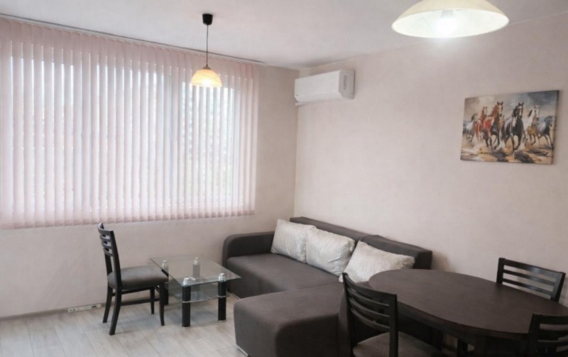 Жилището се намира на 2-ри етаж от общо 5 в сградата и е с функционално разпределение, включващо входно антре, хол с кухненски бокс, две самостоятелни спални, две бани с тоалетни и тераса. Апартаментът е обзаведен и оборудван с необходими електроуреди за едно домакинство.