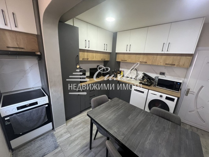 Тристаен апартамент СЛЕД ОСНОВЕН РЕМОНТ - кв. Тракия ! Жилището е разпределено по следния начин: хол с усвоена тераса, кухня с усвоена тераса, ДВЕ спални, коридор, ДВЕ САНИТАРНИ помещения (баня и тоалет, отделно само тоалет). ПОДОБРЕНИЯ: PVC дограма, ВЪНШНА и ВЪТРЕШНА изолация, нови ВХОДНА и ИНТЕРИОРНИ врати, подменени Ел и ВиК инсталации, подовите настилки са ламиниран паркет и теракота, венецианска мазилка в хола, кухнята и коридора. Имотът се предлага изцяло ОБЗАВЕДЕН с всички налични МЕБЕЛИ и ЕЛ. УРЕДИ. Кухнята е висок клас, изработена по индивидуален проект. Отоплението/охлаждането е решено посредством ТРИ КЛИМАТИКА! Сградата е одобрена за САНИРАНЕ. Към имота принадлежи ИЗБА. Изложение: ИЗТОК/ЗАПАД.
