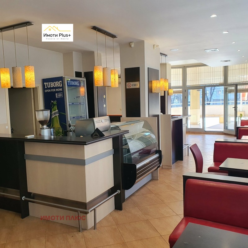 Напълно оборудвано заведение под наем в представителна сграда на комуникативно място. Състои се от салон за клиенти, голяма тераса с площ 64 м2 с тента с възможност за разполагане на маси и столове, кухня, помощни помещения. 100% обзаведено и оборудвано, включително и с професионална кафемашина, готово за започване на работа. Отговаря на всички изисквания за работа.