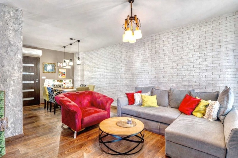 Имотът впечатлява с отлично функционално разпределение, изчистени линии и внимателно подбрани материали, създаващи усещане за стил, комфорт и завършеност. Изложението юг/югозапад осигурява естествена светлина през целия ден и допринася за топлата и уютна атмосфера в жилището. Интериорът е проектиран с внимание към детайлите и използването на първокласни материали.