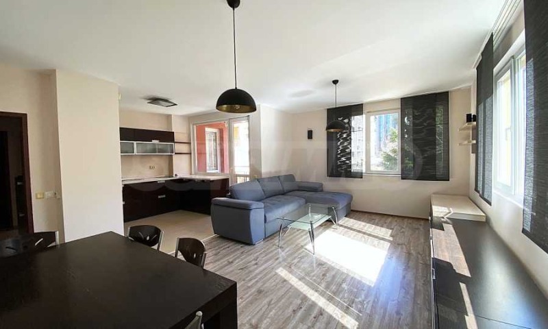 Дневната е просторна и слънчева, с големи прозорци, които осигуряват изобилие от естествена светлина през целия ден. Кухнята е практично организирана и оборудвана с необходимите електроуреди и достатъчно шкафове за съхранение.
