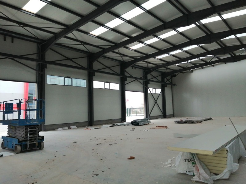 Предлагаме Ви складово-производствено помещение с площ 2210кв. м. с метална конструкция и термопанелни стени(10см) в процес на изграждане! Отлична локация и комуникации - в близост до булевард! Отговаря на всички европейски изисквания: Височина на помещението - 9м. Под шлайфан бетон, автоматизирана врати , естествено осветление и луминисцентни осветителни тела. Бетонирана площадка за паркиране. Високи електрически мощности! Соларна инсталация ! Интернет и видео наблюдение! Системи за пожарна безопасност: пожарогасене и известяване, офис и санитарен възел. Цената е без ДДС! Други опции: ТИР достъп, паркоместа за клиенти.