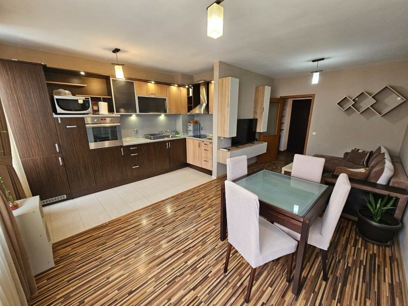 Коридор, всекидневна с кухненски бокс, спалня, баня с тоалетна и тераса. Отоплението е на ТЕЦ, но има и два климатика (mitsubishi)