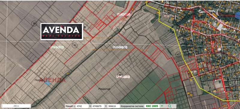 Парцелът е с 29 метра лице към полски път, правилна форма и удобен достъп. Съседният парцел ПИ 58606. 32. 70 с площ от 800 кв. м, също се предлага за продажба.