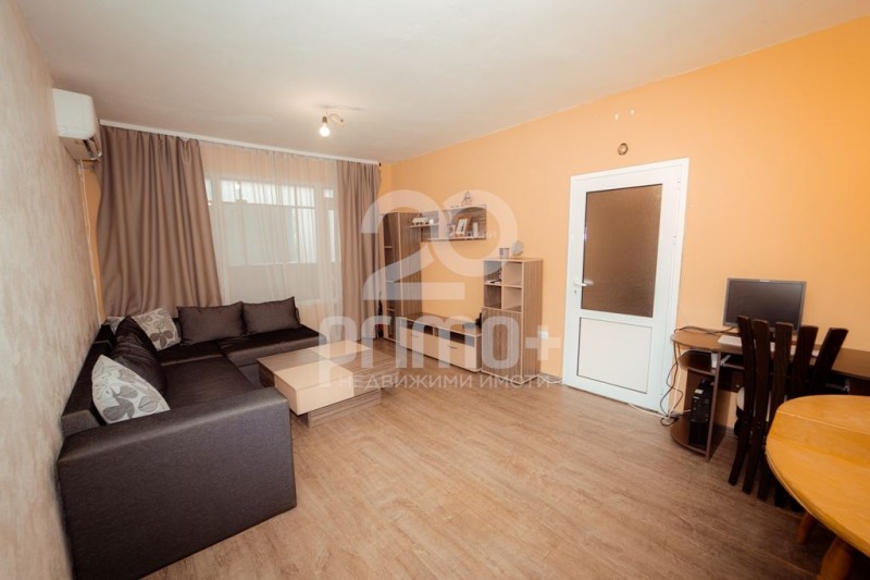 Primo+ недвижими имоти ви предлага двустаен апартамент, разположен в квартал Зона-Б. Районът е добре уреден, като в непосредствена близост се намират хранителни магазини, детски площадки и спирки на градския транспорт. Добри условия за паркиране и големи междублокови пространства. Имотът е разположен на първи етаж от пететажна сграда и е с функционално разпределение, включващо: кухня с усвоена тераса, дневна, спалня, баня, отделна тоалетна и остъклена тераса. Изложението е изток/запад, което осигурява естествена светлина през целия ден. Апартаментът е с подменена дограма и външна топлоизолация, предлага се напълно обзаведен, с всички електрически уреди и мебели. Отоплението и охлаждането са осигурени чрез климатици. Площта на апартамента по документ за собственост е 67. 65 кв. м, а към него има прилежащо избено помещение с площ 11. 09 кв. м, което е функционално приспособено като работилница.
