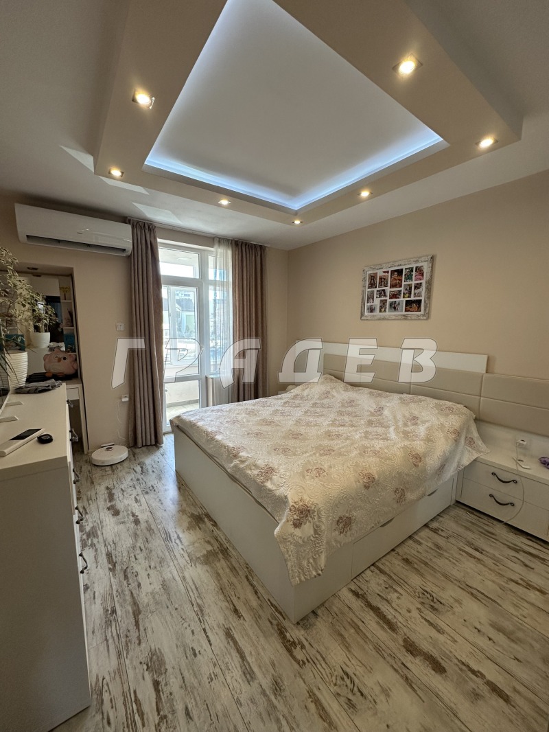 Жилището е напълно реновирано с висок клас материали и се предлага изцяло обзаведено и оборудвано, готово за нанасяне без никакви допълнителни инвестиции. Интериорът е стилен, модерен и създава усещане за комфорт и уют.