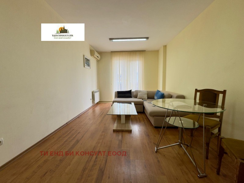Жилището е разположено на първи етаж (над партер) в сграда с контрол на достъпа и отлично поддържани общи части. Отдава се напълно обзаведено и оборудвано с всичко необходимо за бъдещите си наематели. Разпределението му е следното: входно антре, хол с кухненски бокс, две спални, баня с тоалетна и две тераси.