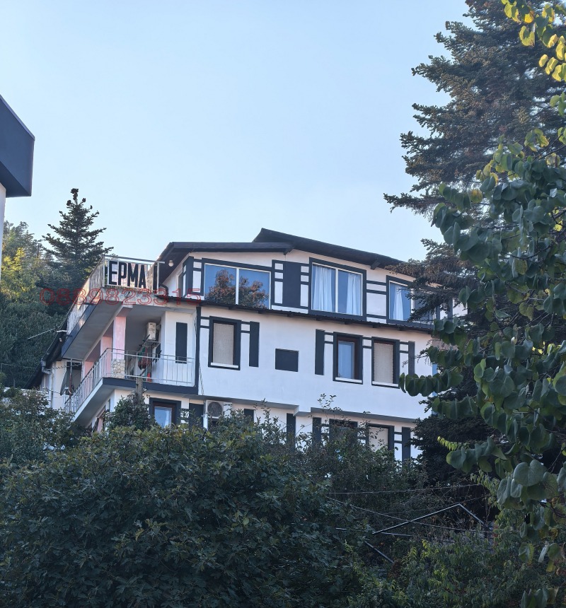 Къщата се намира на 0, 3 км от морето, на 250 м от Националният парк 'Златни пясъци' и на 8 км от центъра на град Варна /автобуси има на 15 мин/. В близост се намира Международния дом на журналистите и на 200 м от Варненски свободен университет. Разполага с 5 стаи-всяка със санитарен възел и тераса, 3 двустайни апартамента, 1 мезонет, кафе-бар и летен бар, има и 10 бани. Всяка стая е обзаведена и декорирана в различен стил. Стаите са с панорама към морето. Двора е 700 кв. м. с много овощни дървета. РЗП 700 кв. м. , има и технически паспорт. Къщата се продава от собственик и при интерес ще изпратим видеоклип и снимки.