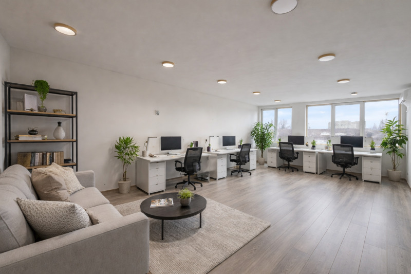 Имотът разполага с голямо отворено пространство, което позволява гъвкаво разпределение според нуждите на бъдещия собственик. Големите прозорци осигуряват отлична естествена светлина през целия ден и създават приятна работна среда.