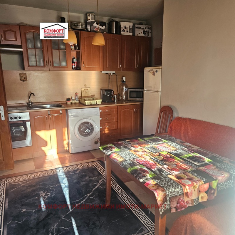 Тристаен апартамент, който в момента се ползва като двустаен, в сграда от 2009 г. , санирана, с поддържани общи части. Жилището се използва като спалня, голям хол, кухня, която е с излаз на дълбока покрита тераса, баня, тоалетна. Отоплението е в два варианта : на климатици и камина с въздоховоди. Прилежаща маза от 4 кв. м. Разполагаме и с други предложения. Съдействаме при кредитиране, както и при снабдяване с нужните документи за изповядване на сделката пред Нотариус. ' Комфорт ' е партньор на всички водещи банки.