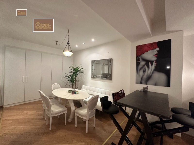 Представяме Ви за продажба многостаен апартамент със ЗП по нот. акт (без терасата) от 149 кв. ,а по експертно заснемане ЗП 155кв. м. и тераса от 77кв. м. ,който е в малка поддържана сграда, само с четири апартамента и с отличен вход. Сградата е построена през 1936г. , стабилна железобетонна конструкция с търговски обект на партера. Районът е тих и спокоен, улицата е бутикова и е на минути от пешеходната част на бул. Витоша. Апартаментът е аристократичен и представителен, ремонтиран преди няколко години с висок клас довършителни работи, материали и обзавеждане. Трофеен имот на престижен адрес в топ центъра на столицата. Жилището по нот. акт се състои от вестибюл, четири стаи, антре, кухня, баня, тоалетна, килер и огромна тераса, но разпределението му е променено както следва: широко входно антре с врати към голяма южна спалня с просторна баня и санитарен възел, втора врата към хол, трапезария, с голяма кухня (поръчкови шкафове и вградени електоуреди и барплот), цялото помещение от 75кв. м. , като холът и спалнята са с френски прозорци и излаз на южната тераса. Оше от входното антре има врата към тоалетна за гости с душ, и друга врата, през която се стига до коридор, следва голяма втора кухня с трапезария и усвоен балкон, и преход към друга просторна спалня. С изложение югоизток(повече юг) е дневната и първата спалня(двете с излаз на терасата от 77кв. м. ), и на северозапад са втората кухня и другата спалня. Към имота има прилежащи мазе от 7, 5кв. м. , и ид. части от дворното място. За въпроси, допълнителни снимки, уточнения и огледи: 0888959939- Александрова