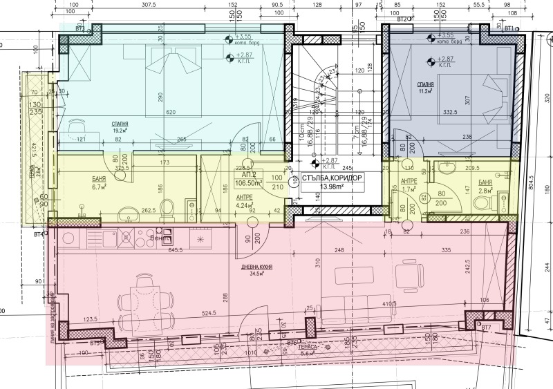 находящ се на 2-ри жилищен етаж в - АПАРТАМЕНТ 02 от чертежите - ЗП - 106, 5 кв. м. ; ОЗП - 134, 06 кв. м. и прилежащ склад/мазе със ЗП 3, 06 кв. м. , ОЗП 3, 29 кв. м.