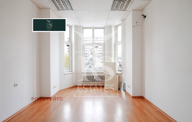 Просторен и представителен офис с обща площ 500 кв. м, разположен на първи етаж от пететажна тухлена сграда. Имотът се намира на първи етаж над търговски обекти и предлага отлична работна среда за компании, които търсят престижна бизнес локация в централната част на София.