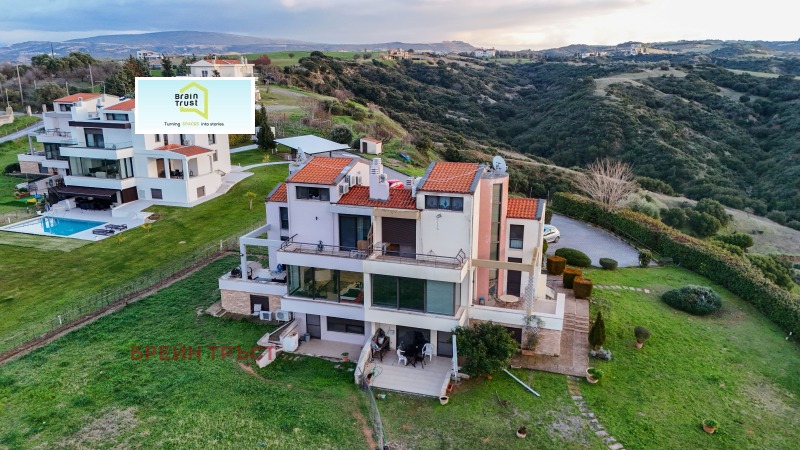 Brain Trust предлага луксозна двуетажна самостоятелна къща от 250 кв. м. върху парцел от 1000 кв. м. , разположена в тихия и привилегирован район на Кардия, Микра, само на 9, 5 км от летището. Построена през 2002 г. , в отлично състояние, предлагаща панорамна гледка към морето и планините. Характеристики: 4 спални (1 главна) 2 бани + WC, 2 кухни, 2 дневни, таванско помещение, вътрешно масивно дъбово стълбище, 4 външни паркоместа.