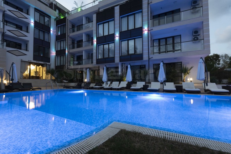 Изисканият комплекс, част от който е имотът, е разположен на първа линия на Южния плаж на Приморско, в близост до популярния ресторант, на 2 минути от центъра на курортния град и недалеч от река Дяволска.