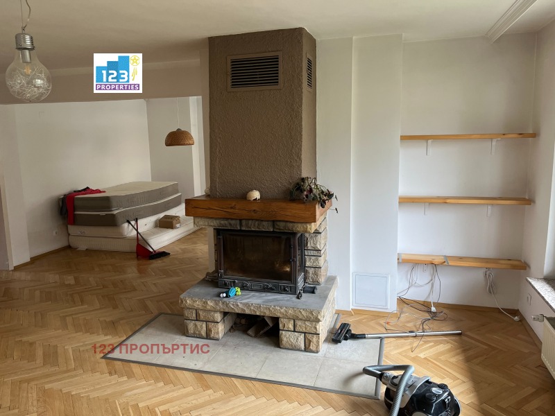 *** Разпределение навсякъде е с дъбов паркет и мрамор; просторна дневна с трапезария и висококачествена камина (с интересна история), голяма тераса пред хола и пред трапезарията и прекрасна гледка към Витоша, отделна кухня (с прозорец и тераса към нея), родителска спалня, баня с тоалетна ; втора спалня, отделна тоалетна, трета спалня / голям кабинет с гледка към Витоша.