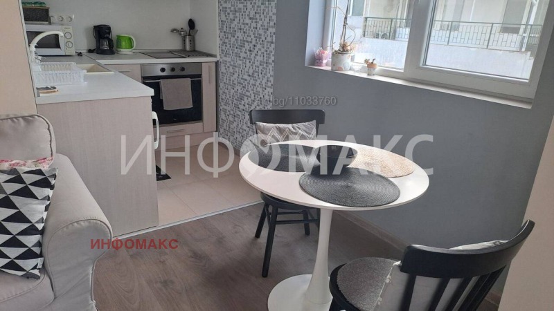 ИНФОМАКС предлага на своите наематели обзаведен Двустаен апартамент намиращ се в нова сграда, с локация: ж. к. Изгрев, в непосредствена близост до големи вериги Супермаркети, спирки на градски транспорт и голям паркинг за свободно паркиране. В района има магазини, училища, детски градини и площадки, парк, а МОЛ Плаза е на 5 минути пеша. Сградата се намира на 3 км от северния плаж на Бургас, на 6 км от Бургаските солници и на 8 км от Летище Бургас.