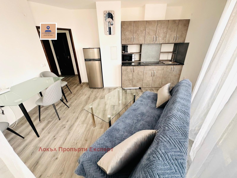 Апартамента е чисто ново и досега не е обитаван. Обзавеждането включва: пералня. керамични котлони, аспиратор, хладилник, електрическа кана, микровълнова фурна и смарт телевизор.