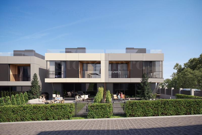 Представяме за продажба нова, модерна двуетажна къща 1, част от впечатляващ комплекс от 20 енергоефективни къщи в с. Бистрица, само на 25 минути с кола от центъра на столицата. Комплексът е разположен на удобна и живописна локация, само на 13 минути от метростанция Бизнес парк и в непосредствена близост до спирка на градския транспорт. Осигурява бърз достъп до Околовръстен път, IKEA и Ring Mall (14 мин), както и до природни и спортни дестинации като езерото Панчарево (13 мин), лифт Симеоново и ски курорта Боровец, разположен на около час път.