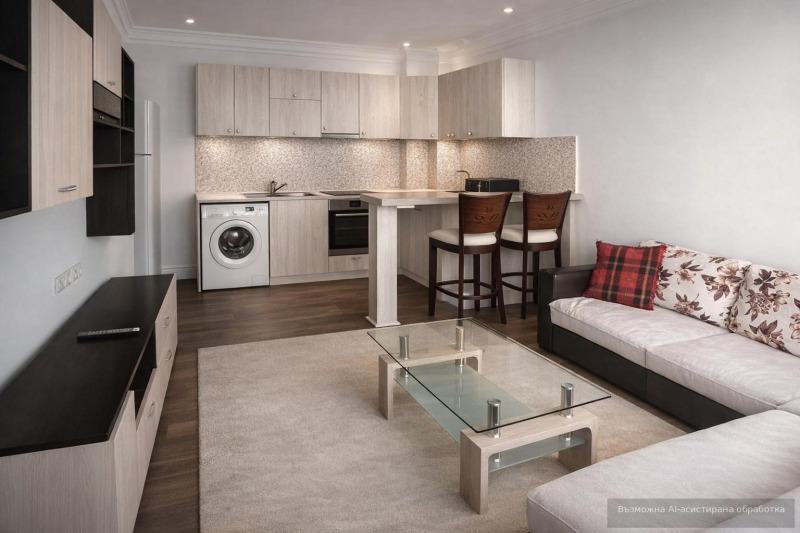 Жилището се предлага напълно обзаведено и оборудвано с всичко необходимо за едно домакинство. Към него има складово помещение. Паркирането в района е свободно.
