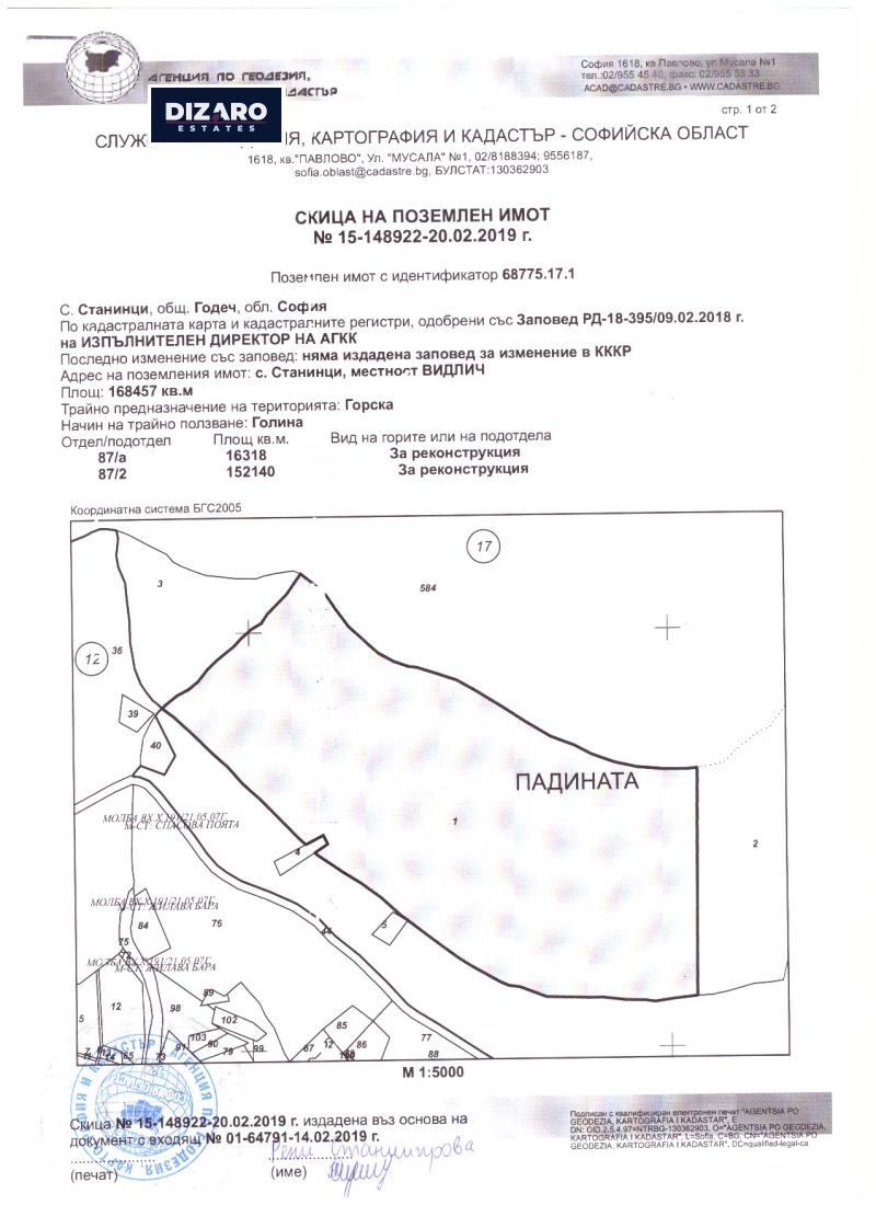 Dizaro Estates предлага за продажба поземлен имот с площ 168 дка, разположен в землището на с. Станинци, общ. Годеч, местност Видлич .