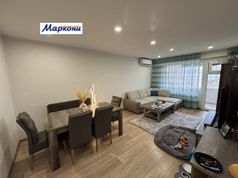 Двустаен непреходен апартамент с разпределение: входно антре, кухня с балкон, хол с балкон, самостоятелна спалня, баня с тоалетна. Апартамента е в много добро състояние, след основен ремонт и се продава напълно обзаведен с обзавеждането видно на снимките. Изложение: Изток-Запад. Добър вход с контролиран достъп и работещ асансьор. Непосредствена близост до Детска градина и 90 СОУ. Свободно паркиране пред блока.