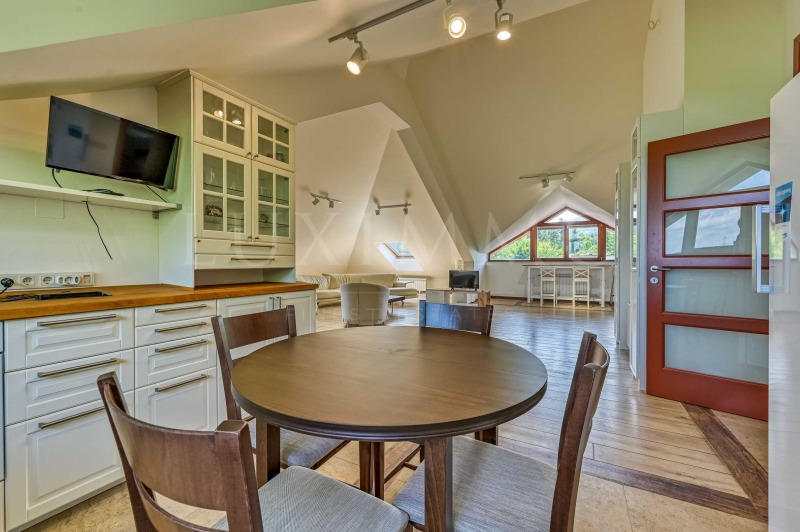 Представяме супер просторен, напълно обзаведен тристаен апартамент под наем - тавански етаж от къща, разположен в престижния затворен комплекс в столицата. Имотът е подходящ за сериозни наематели, които търсят сигурност и комфорт, в зелена среда с отличен достъп до града.