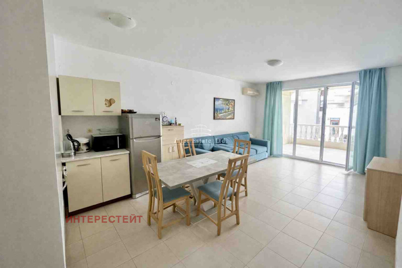 Апартаментът се предлага за продажба с всички необходими мебели и електроуреди. Комплексът разполага с басейн, детска площадка и красиво озеленени общи части, което го прави подходящ както за семейна почивка, така и за инвестиция. Акт 16 от 2008 година. Годишна такса обслужване на комплекса 550 на година. Не пропускайте възможността да притежавате имот на спокойно и комуникативно място, с лесен достъп до плажа и удобства за релакс и отдих.