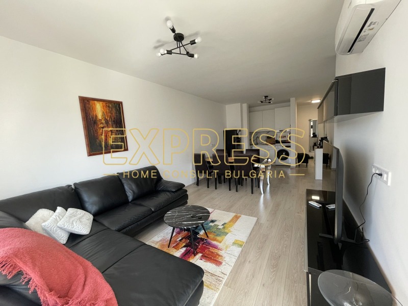 ПОДЗЕМНО ПАРКОМЯСТО С КЛЕТКА И РУЛЕТНА ЩОРА ВКЛЮЧЕНО В НАЕМНАТА ЦЕНА!!! Свободен от 01. 05. 2026г. Агенция за недвижими имоти Експрес Дом Консулт България предлага на вашето внимание луксозно обзаведен, светъл, просторен тристаен апартамент на изключително комуникативно място в близост до МОЛ СОФИЯ, метростанция, спирки на градския транспорт, хипермаркети, паркове. Разпределение: входно антре, хол с кухненски бокс и трапезария, родителска спалня със собствена баня, втора спалня, баня с тоалетна, две тераси. Имотът се отдава напълно обзаведен. Вградена кухня с нови маркови електроуреди, включително съдомиялна, инверторни климатици от висок клас в стаите. Настилки: под ламинат, гранитогрес, стени латекс. Имотът се намира в нова луксозна сграда с контрол на достъпа и видеонаблюдение. Предимства: НОВ, луксозно обзаведен апартамент в непосредствена близост до метростанция, МОЛ СОФИЯ, Бизнес и Административни сгради. Ниски консумативни разходи и много други екстри.