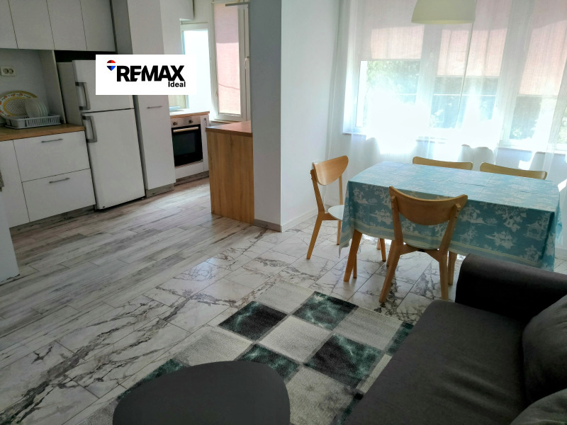 Предлагам под наем обзаведен двустаен апартамент, който се намира на втори жилищен етаж в тухлена сграда без асансьор. Апартаментът се състои от входно антре, дневна с кухненска част, спалня и баня. Всяка стая има климатик. На кухня има необходима посуда и прибори. Допускат се домашни любимци (кучета от дребни породи), като при наемане се дължи двоен депозит. Дългосрочно. Огледи след 15 март. За повече информация и огледи: 0878606313, Тетяна Надточа.