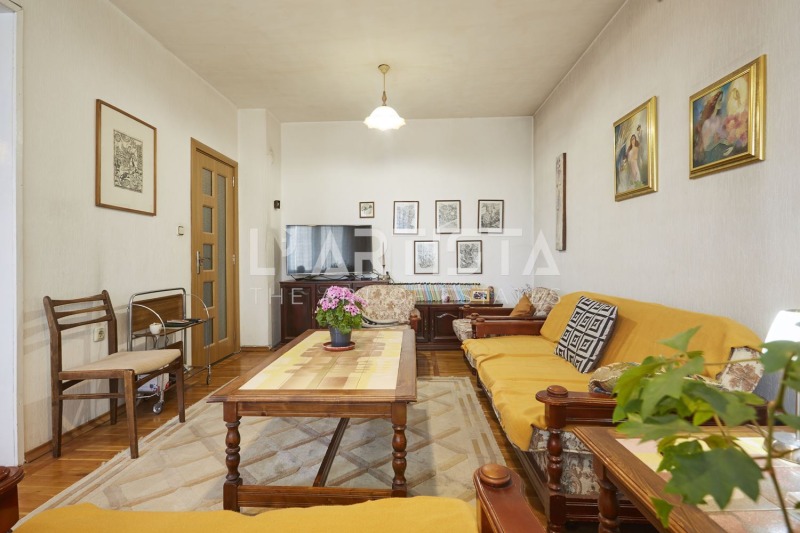 Жилището е разположено в тухлена сграда на 7-ми етаж от общо 9 и се отличава с много добро разпределение, просторни помещения и отлична слънчева изложеност.