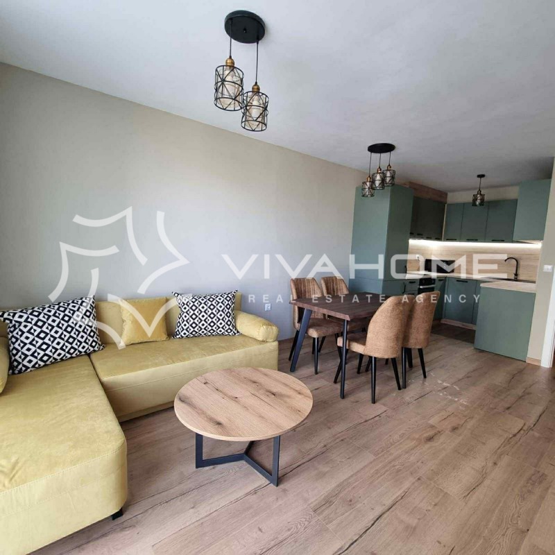 Жилището е обзаведено с модерни мебели и оборудвано с всички необходими електроуреди, включително пералня със сушилня, осигуряващи пълно удобство за ежедневието.