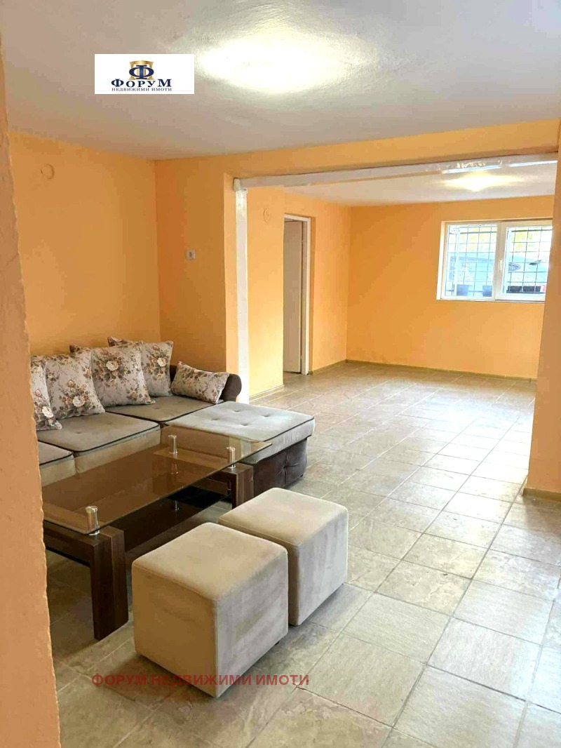ФОРУМ недвижими имоти предлага под наем частично обзаведен партерен етаж, състоящ се от четири преходни стаи, баня с тоалетна, килер, коридор. Етажът е с обезопасени вход и прозорци, ПВЦ дограма, стени - цветен латекс, под - теракот. Помещенията са в много добро състояние, готови за ползване. Отопление - с климатици. Има СОТ, при нужда може да се активира.