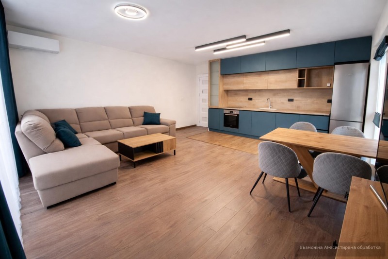 Жилището се предлага напълно луксозно обзаведено с поръчкови мебели и напълно оборудвана кухня с електроуреди BOSCH, климатик висок енергиен клас, пералня и сушилня AEG.