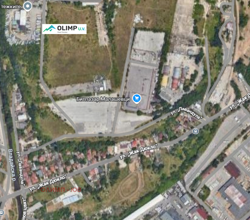 Парцелът се намира в района на ул. Жак Дюкло, в близост до Битпазар Малашевци. Достъпът до имота е много добър по асфалтов път, а основните комуникации като ток и канализация са изградени пред парцела, като водоснабдяването се намира в непосредствена близост.